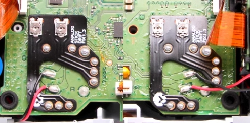 它把電路薄膜做成 "問號型" (為了繞過PS5控制器震動馬達的焊點)