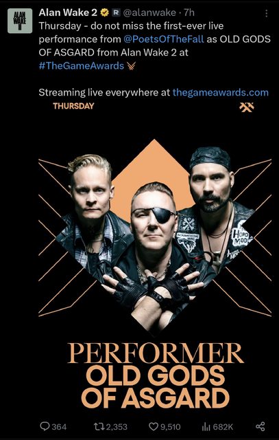 心靈殺手2裡的樂團Old Gods of Asgard 將會在本週的The Game Awards 上表演,另外門