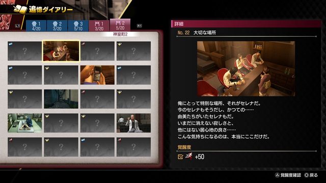 標所構成的「覺醒度」。提升覺醒度有諸多好處,像是可強化桐生專用職業「堂島之龍」