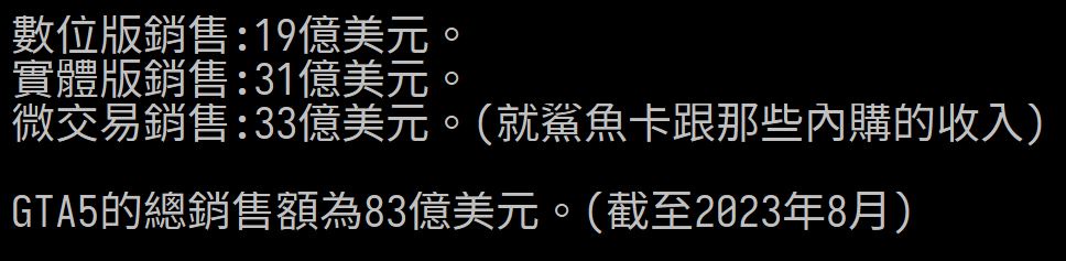 推 leon19790602: GTAV記得之前看財報,收益是 微交易>實體>數位 08/09 17:29