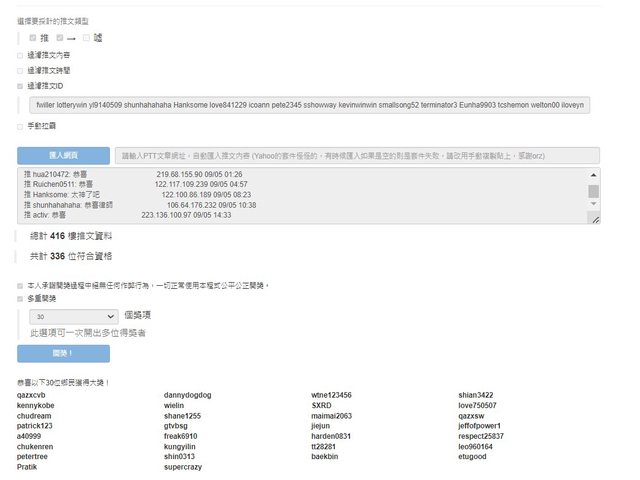 恭喜以上30位得獎者