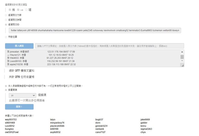 恭喜以上二十位得獎者
