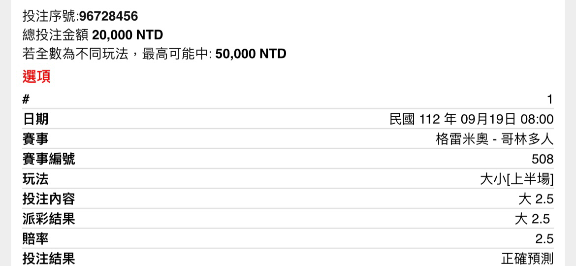 → RichardCastl: 有買點很不錯,賠率蠻好的。格雷再 101.137.20.77 09/19 08:31