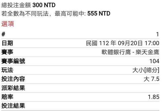 ※ 文章網址: https://pttsite.org.tw/SportLottery/M.1695189632.A.AD2
