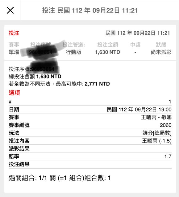 2060 19:00 王曦雨-敏娜 讓分-1.5 如圖所示 希望可以過