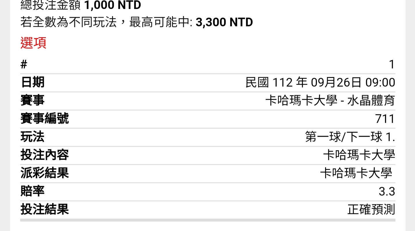 → kzck: 沒正確比分可押 39.15.57.109 09/26 08:49