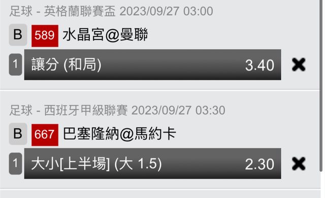 曼聯應該贏一分就桶可能1:2或0:1 另一場單純隨便猜的,所以小買就好