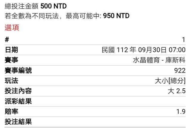 ※ 文章網址: https://pttsite.org.tw/SportLottery/M.1696026599.A.930