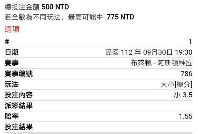 ※ 文章網址: https://pttsite.org.tw/SportLottery/M.1696068801.A.99F