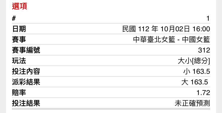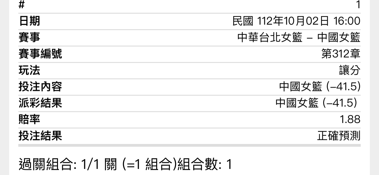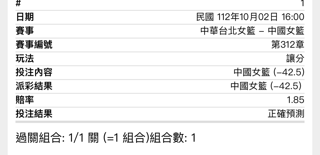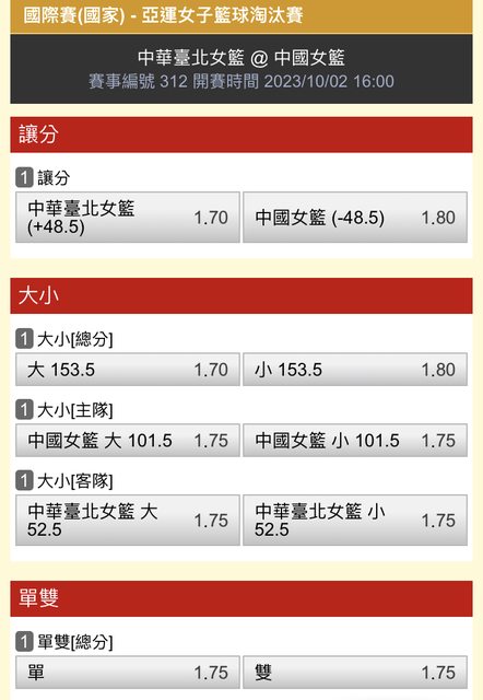 → Taiwan007: 倒讓45.5 收中華62.5小 42.77.45.246 10/02 17:31
