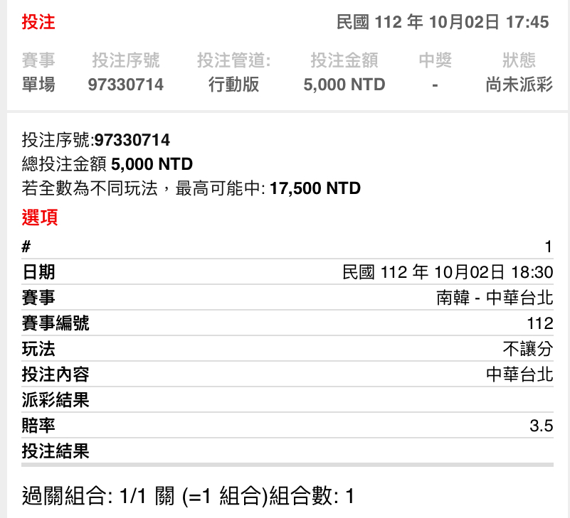 推 jeff1013: 賠率狂降 應該一堆人壓愛國牌吧 39.12.104.153 10/02 18:14