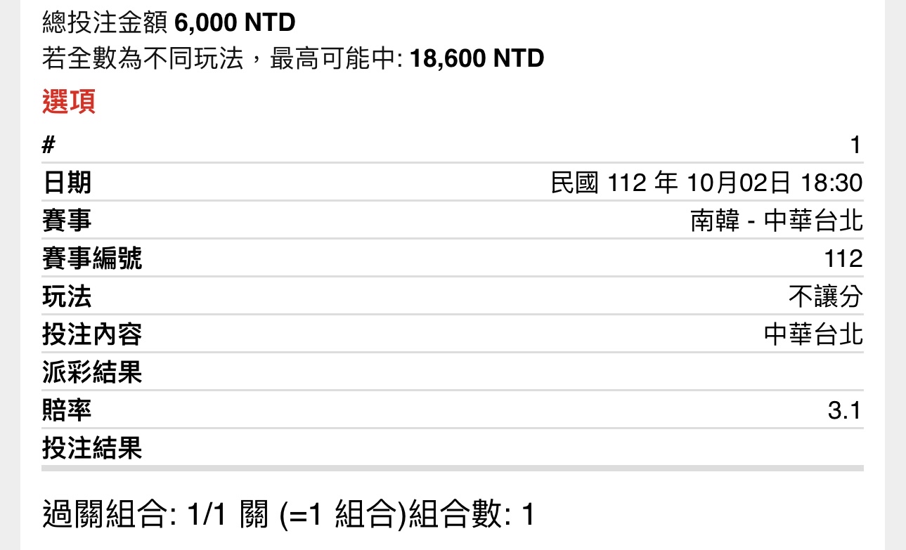 推 aaaccc112: 謝謝帥呆的中華隊 小資贏最多的一次 61.230.53.176 10/02 21:56