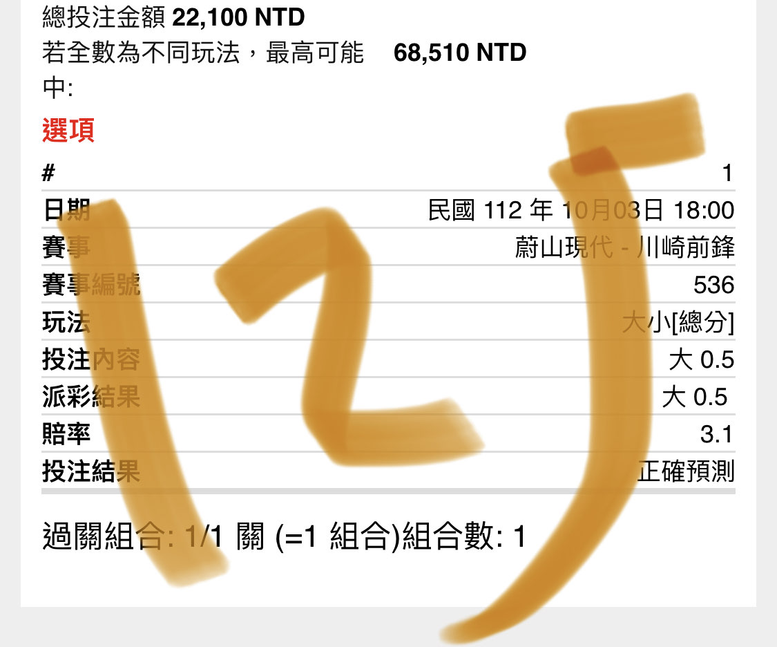 推 JohnDDD: 大0.5×4.50、川崎PK×5.50 223.139.1.1 10/03 19:48