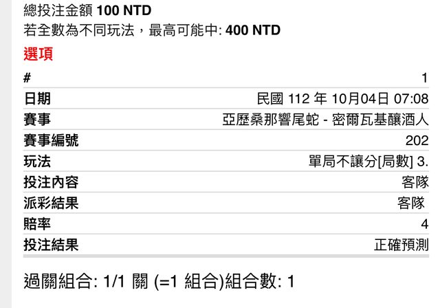 ※ 文章網址: https://pttsite.org.tw/SportLottery/M.1696389223.A.A7F