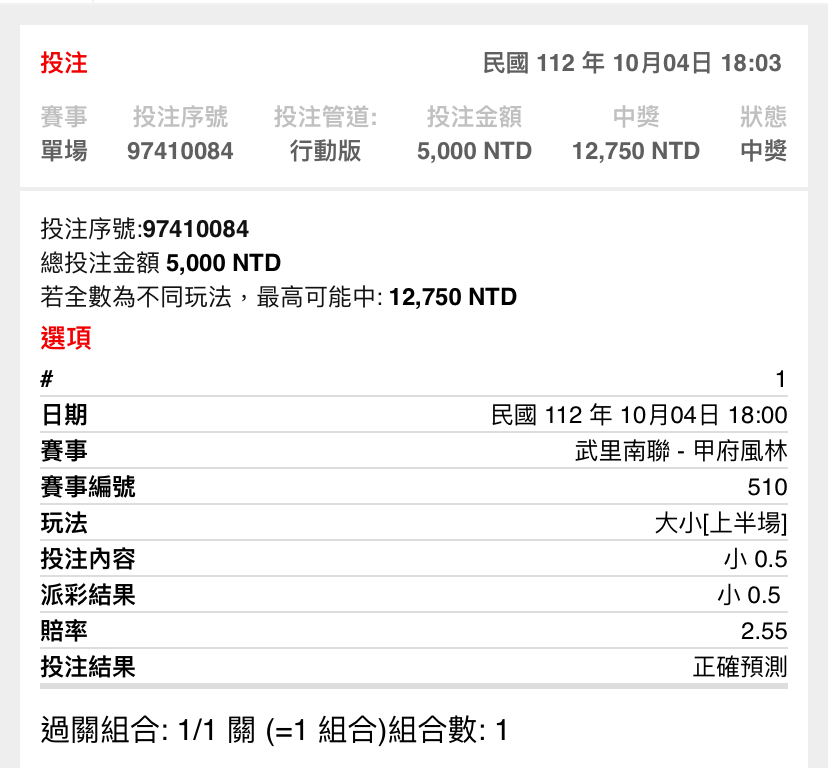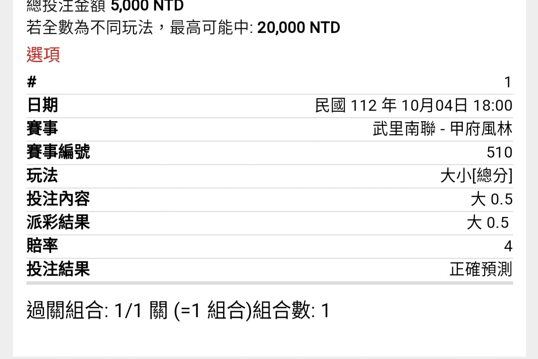 → Taiwan007: 我這場輸400,倒1.5大 42.77.45.246 10/04 19:51