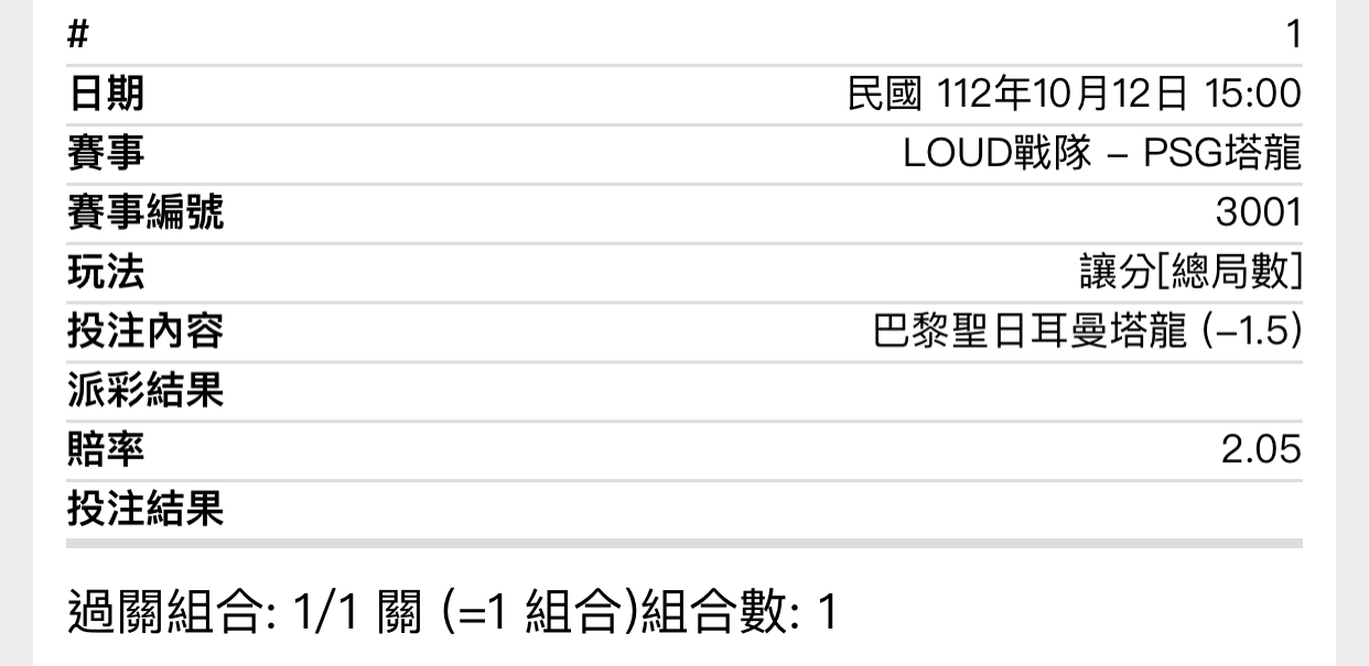 推 keniori: 我是買PSG 2:0 CFO 2:1 LLL前天會贏比124.199.101.247 10/12 12:31
