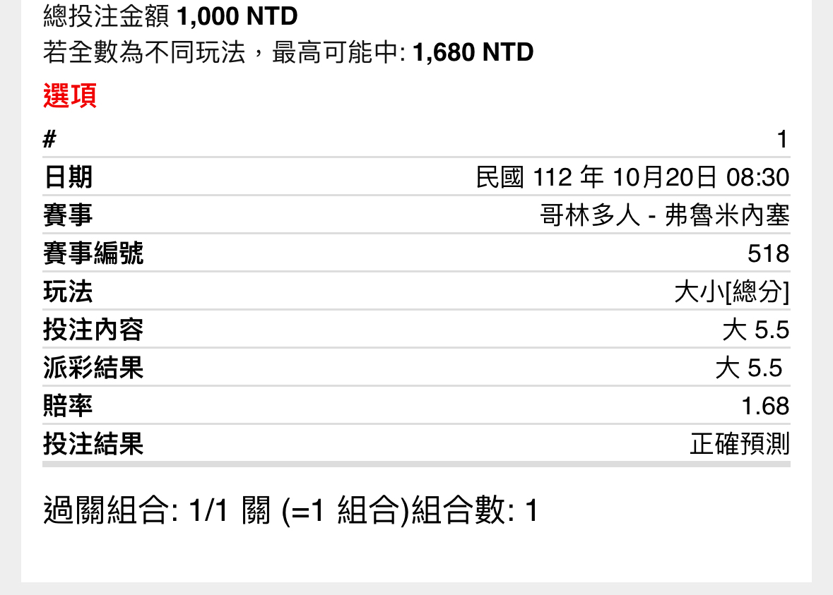 → srtt123: 上半2.5小買一張幫大家進球 1.169.120.233 10/20 08:56