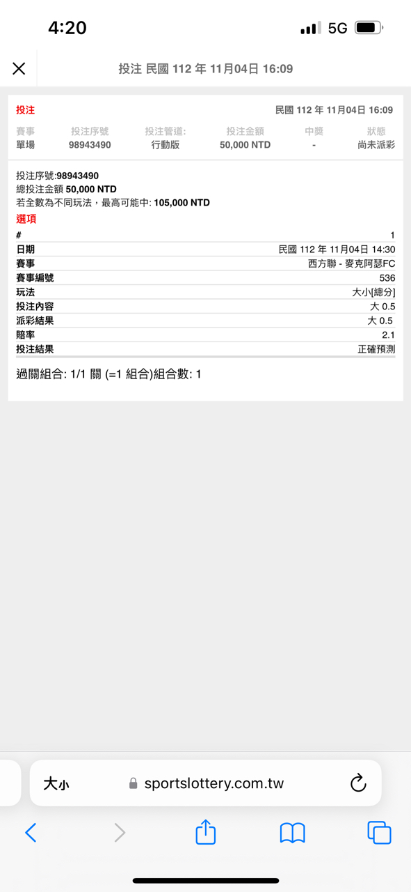 推 gamaqqq: 收 1.5小 1.78 進球數單 1.8 倒全場蛋蛋 39.10.24.98 11/04 16:24