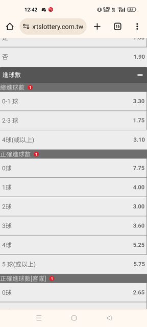 正確進球一球我猜先買會比場中追1.5小高!