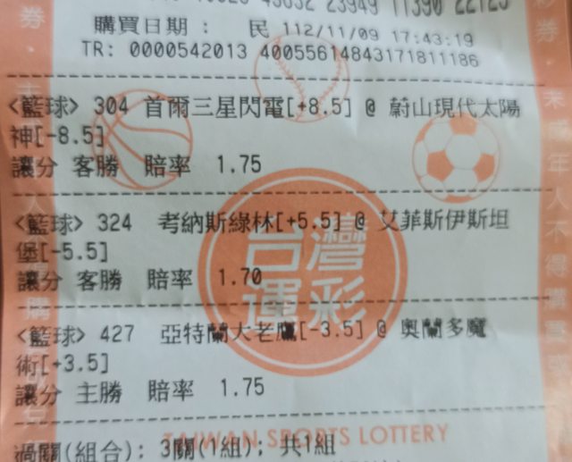 ※ 文章網址: https://pttsite.org.tw/SportLottery/M.1699604990.A.DCC