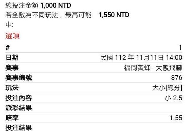 ※ 文章網址: https://pttsite.org.tw/SportLottery/M.1699677639.A.229