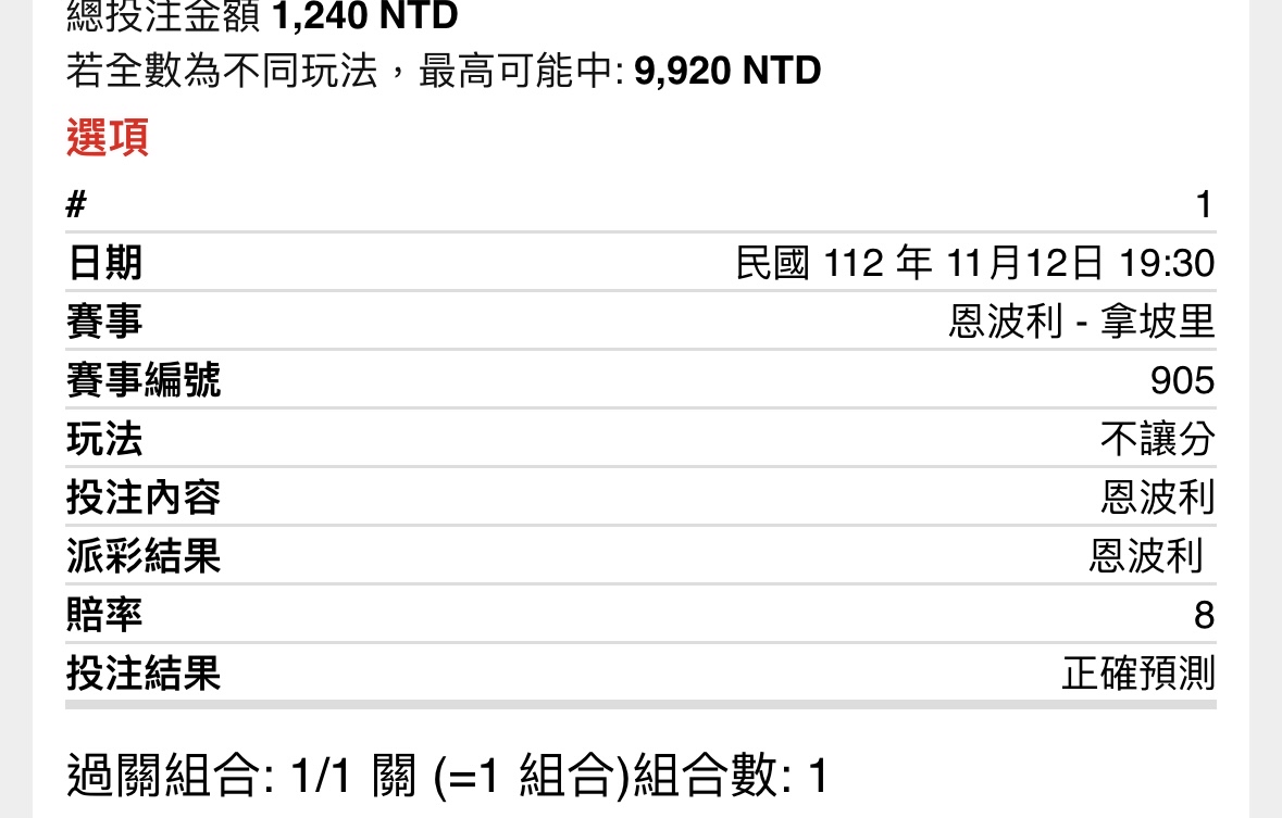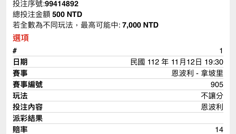 → daniel530: 網路問題 無法投注 101.12.51.148 11/12 19:29