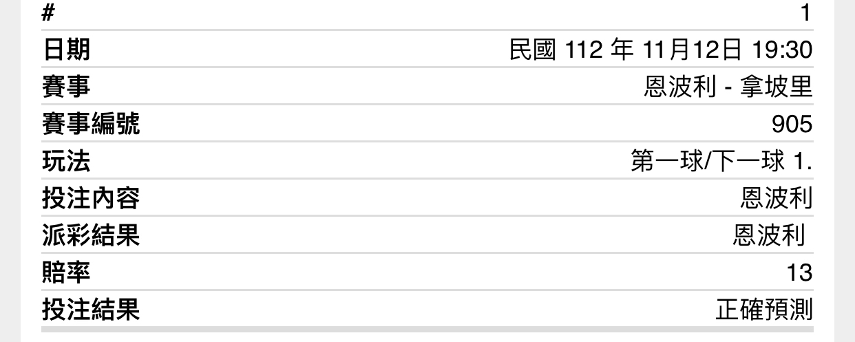 噓 rex9999: 哇靠!超大爆冷好險沒玩 223.141.23.46 11/12 22:22