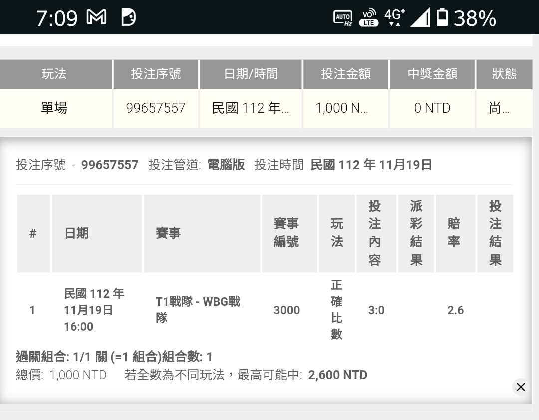 → FakerFan10Ys: WBG 3-2、WBG 3-1、WBG+1.542.79.114.145 11/19 15:40