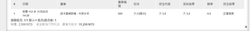 推 williamken55: 上半0球10萬會不會輸錢阿 39.14.18.202 11/25 14:51