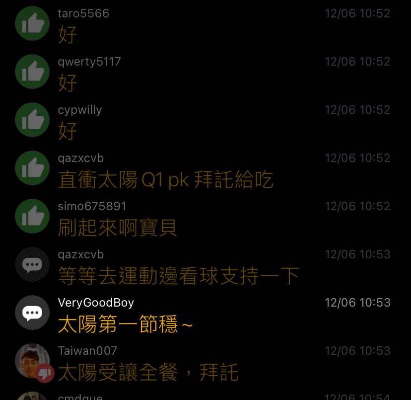 → VeryGoodBoy: 太陽第一節穩~ 61.230.242.189 12/06 10:53
