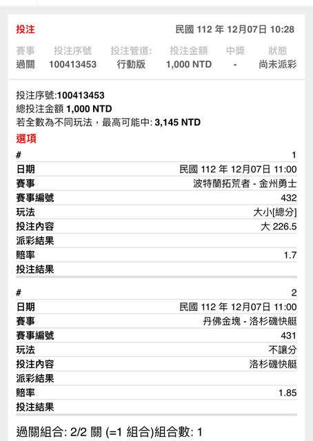 ※ 文章網址: https://pttsite.org.tw/SportLottery/M.1701916361.A.7AA