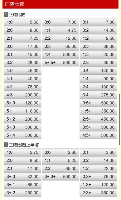 正比的話猜:2:2(12.00)、3:3(65.00)