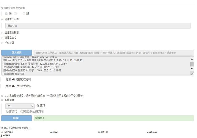 再抽五位 有推聖誕快樂