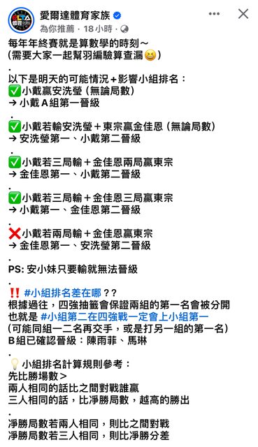 推 sunner: 小戴只要拿一盤就晉級 被2:0同時東宗贏就114.136.219.126 12/15 10:54