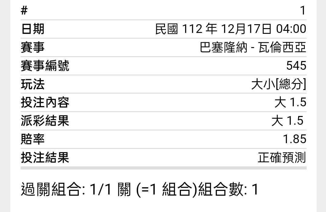推 nick04140414: 感覺雙進+2~3 巴塞1.5 不過今天真他123.194.156.221 12/17 03:54