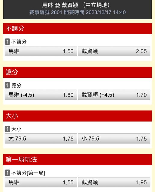 → jerryyuan: 2.5是第一盤不是全場 42.78.115.49 12/17 14:35