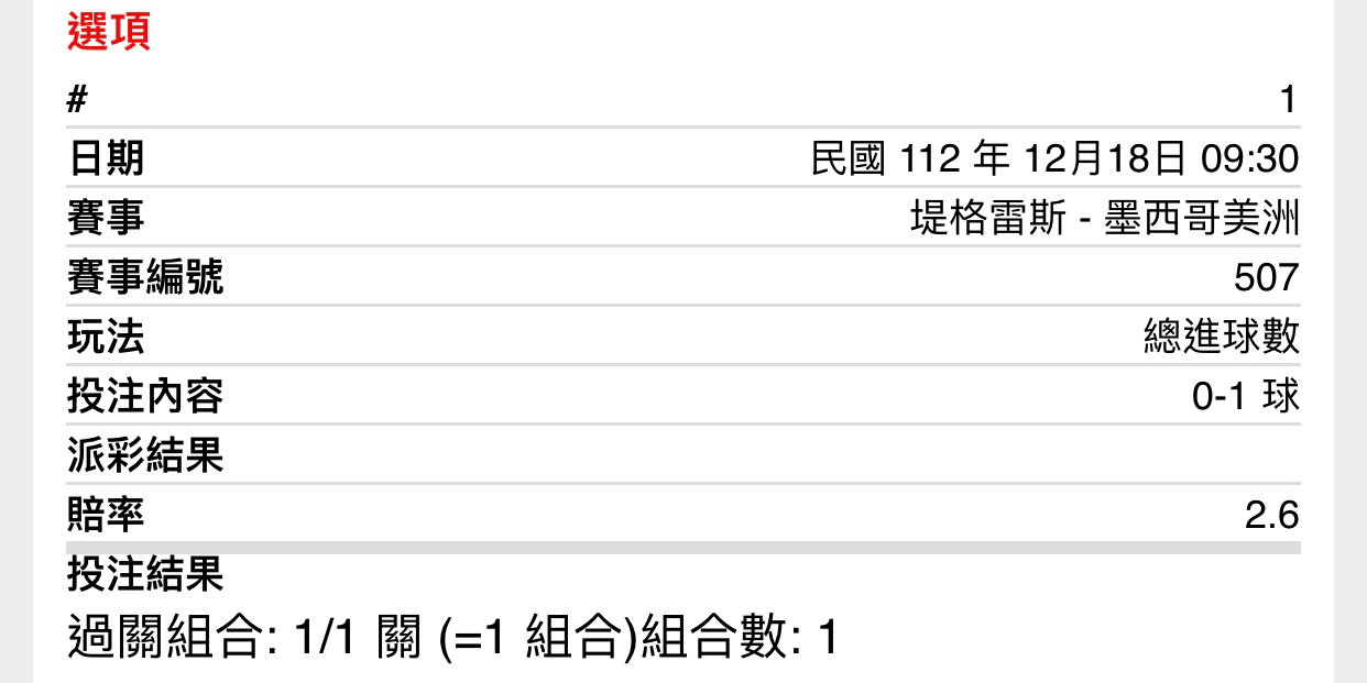 → lotterywin: 不過這場0-1 2.6倍 0球也才6倍103.234.206.243 12/18 11:45