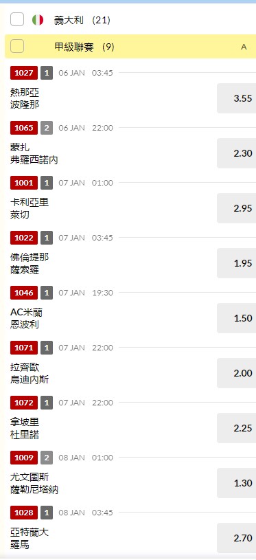 推 tender573: 如果我選擇足球,這樣就會發現「意甲」 27.240.169.5 01/06 07:38