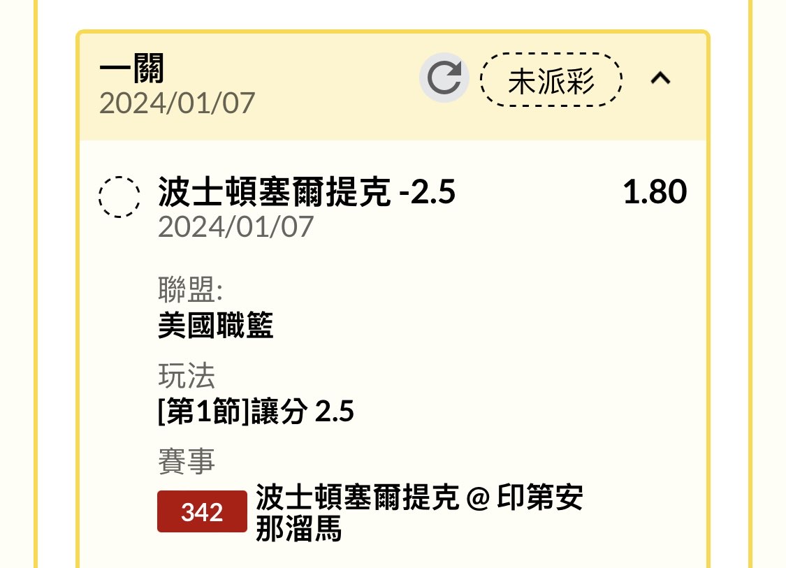 推 instill8: 小弟昨晚買到溜馬+6.5低賠219.71.100.207 01/07 07:53