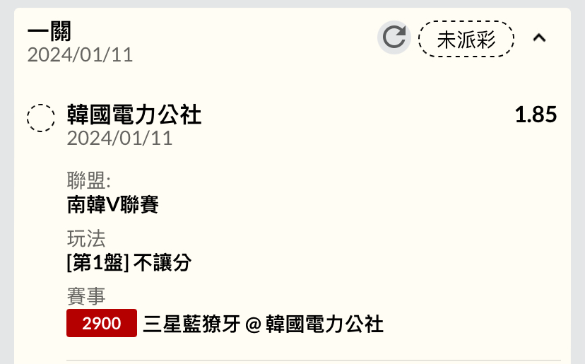 → nagerlin32: 賽前買的第一局不知道會不會派彩 223.137.13.27 01/11 18:23