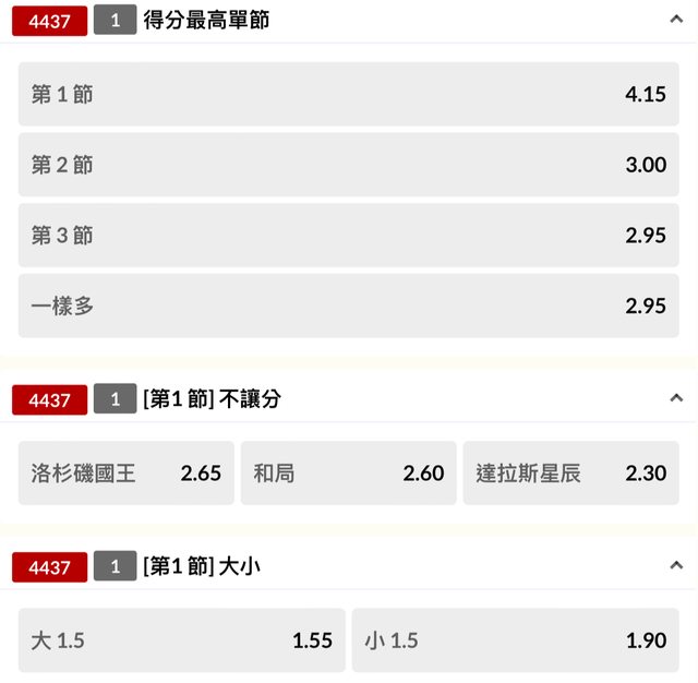 → z1003357: 先不進場國王2.5大 1.200.0.10 01/17 09:34