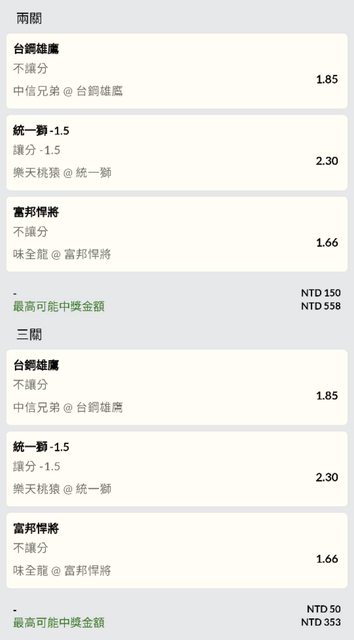 昨天下雨停賽前+前天的2:1...