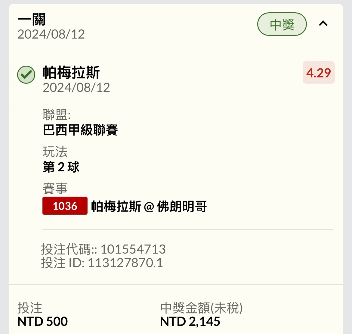 推 Peteribb: 2.07倍中場3.5大,上3+8.75倍差點乾101.9.135.246 08/12 08:01