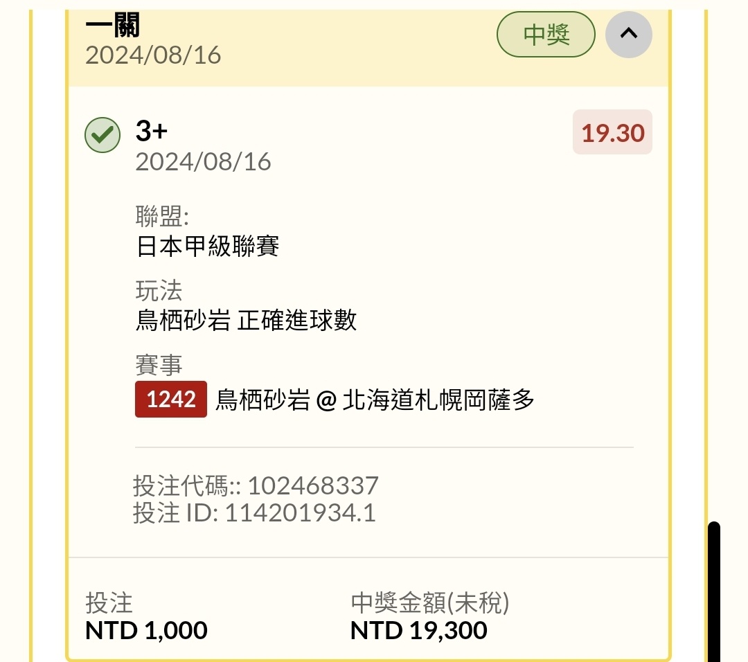 → Fishsteak168: 賽前上三4倍多 114.46.218.227 08/16 18:47