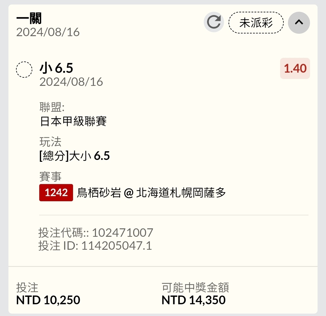 → nashieh: 開踢好像上3 5.2倍 114.42.145.57 08/16 18:47