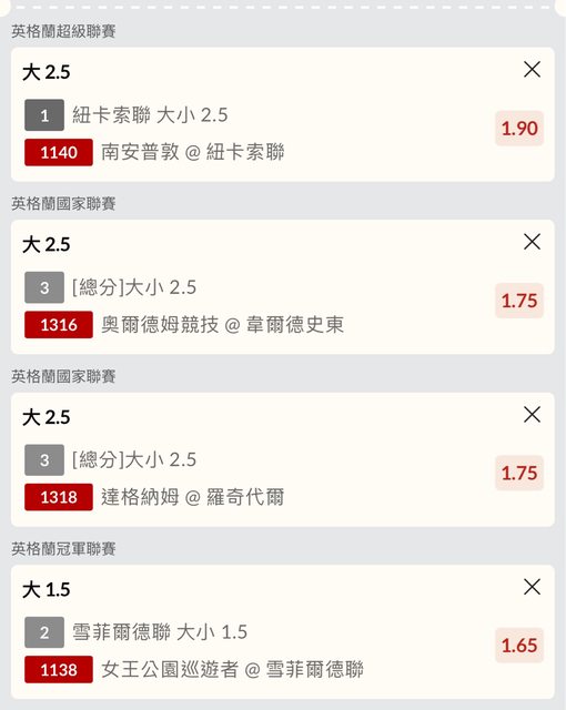 紐卡索聯2.5大1.9