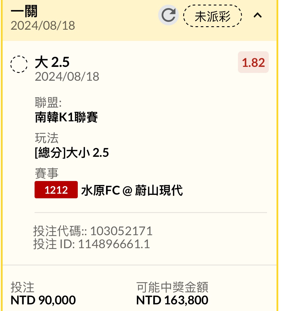→ all035: 我初盤還買蔚山1.5 大..... 39.9.40.126 08/18 19:17