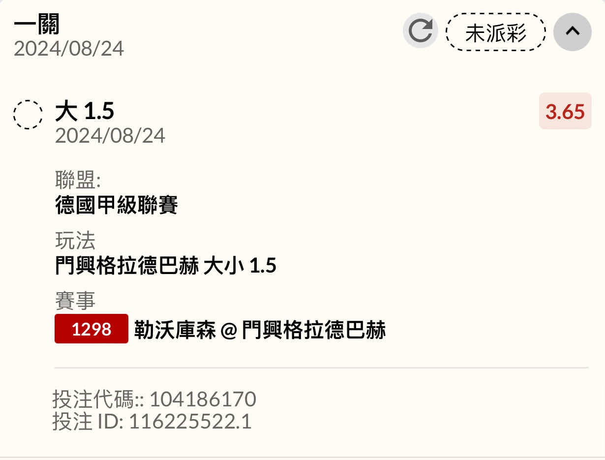 → nick04140414: 乾 有感覺會和局 沒買主1.5大好像 123.194.150.71 08/24 04:15