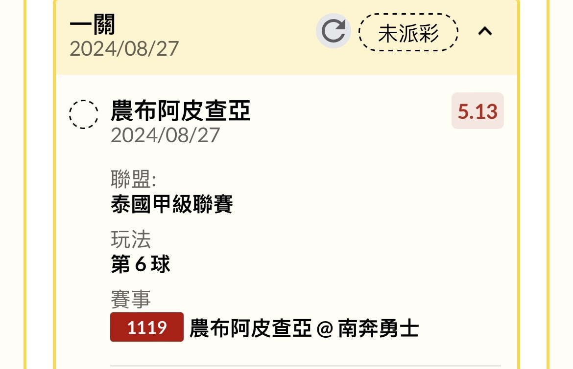 推 ty7788665: 6+有10倍吧 第4球進時7.12 106.1.217.229 08/27 21:04