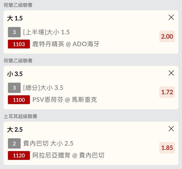 鹿特丹菁英/AOD海牙 上半1.5大